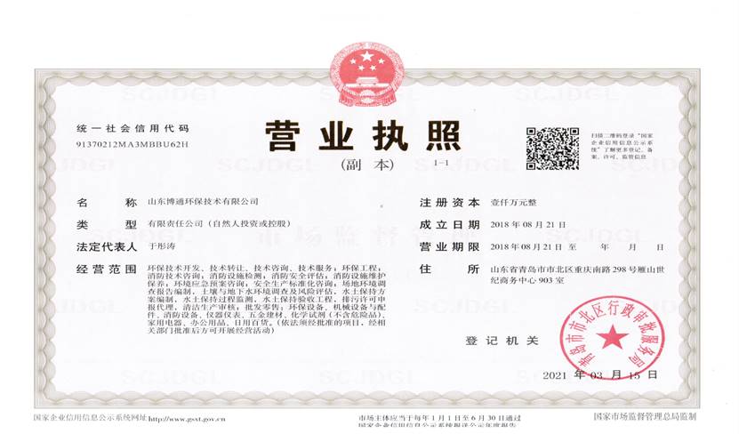 山東博通環(huán)保技術(shù)有限公司是一家專業(yè)從事環(huán)保、安全、消防的多元化技術(shù)服務(wù)公司,公司致力于打造專業(yè)的技術(shù)服務(wù)團隊,立足青島,輻射山東,服務(wù)范圍涵蓋:環(huán)保技術(shù)開發(fā)、技術(shù)轉(zhuǎn)讓、技術(shù)咨詢、技術(shù)服務(wù);環(huán)保工程;消防技術(shù)咨詢;消防設(shè)施檢測;消防安全評估;消防設(shè)施維護保養(yǎng);環(huán)境應急預案咨詢;安全生產(chǎn)標準化咨詢;場地環(huán)境調(diào)查報告編制,土壤與地下水環(huán)境調(diào)查及風險評估,水土保持方案編制,水土保持過程監(jiān)測,水土保持驗收工程,排污許可申報代理,清潔生產(chǎn)審核;批發(fā)零售:環(huán)保設(shè)備、機械設(shè)備與配件、消防設(shè)備、儀器儀表、五金建材、化學試劑(不含危險品)。公司具有“建設(shè)手續(xù)一站式辦理,安環(huán)問題一條龍解決”的獨特優(yōu)勢,可為客戶提供高效、優(yōu)質(zhì)的安全、環(huán)保、消防管家技術(shù)服務(wù)。